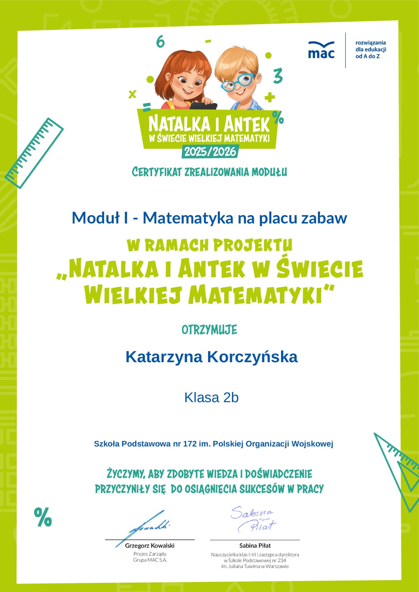 Projekt „Natalka i Antek w Świecie Wielkiej Matematyki”